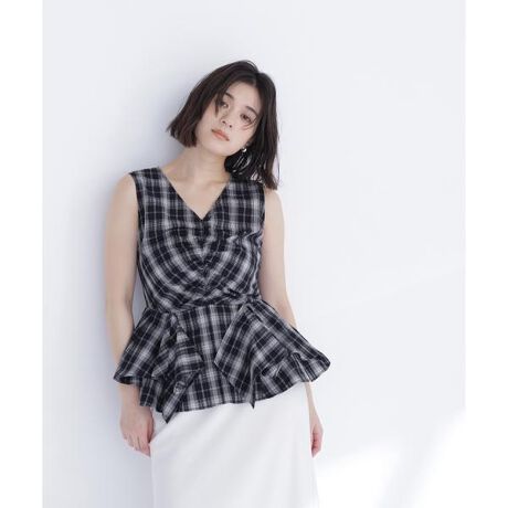 表面感のあるチェック柄生地を使用したペプラムブラウス。動きのあるフリルが気になるラインをカバーしつつ、スタイルアップ効果も期待できます。着るだけでコーディネートが決まる、主役級のデザインです。<素材>表情感のあるポコポコとしたチェック柄の生地を使用しています。<詳細>仕様・左ファスナー裏地・なし透け感・ややあり / 光沢・なし / 伸縮性・なし生地の厚さ・普通※モデルの着用画像の場合、光の当たり具合により、実際の色味と異なって見えることがございます。色味は、商品単体の画像をご参照ください。
