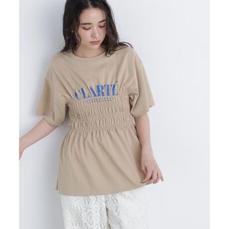 Tシャツボディにシャーリングを施したペプラムカットソー。ロゴプリントがカジュアルなアクセントになっています。ロゴTが苦手な方でも取り入やすいよう、ウエストまわりに立体感を作り、女性らしいシルエットを演出。長め丈でヒップまわりをさりげなくカバーします。<素材>表面が整った天竺カットソーを使用しています。<詳細>仕様・開閉なし裏地・なし透け感・なし / 光沢・なし / 伸縮性・あり生地の厚さ・普通※モデルの着用画像の場合、光の当たり具合により、実際の色味と異なって見えることがございます。色味は、商品単体の画像をご参照ください。