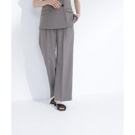 セットアップ対応のワンタックワイドパンツ。脚のラインをキレイに見せるストレートフォルムで、縦ラインを強調するすっきりとした印象のデザインです。立体感のあるワンタックデザインと、肌離れの良いシルエットで快適なはき心地です。<素材>ドライタッチな麻調素材を使用しています。<詳細>仕様・前ファスナー裏地・なし透け感・なし / 光沢・なし / 伸縮性・なし生地の厚さ・普通<シリーズ>■ジャケット[品番:0176150503]※モデルの着用画像の場合、光の当たり具合により、実際の色味と異なって見えることがございます。色味は、商品単体の画像をご参照ください。