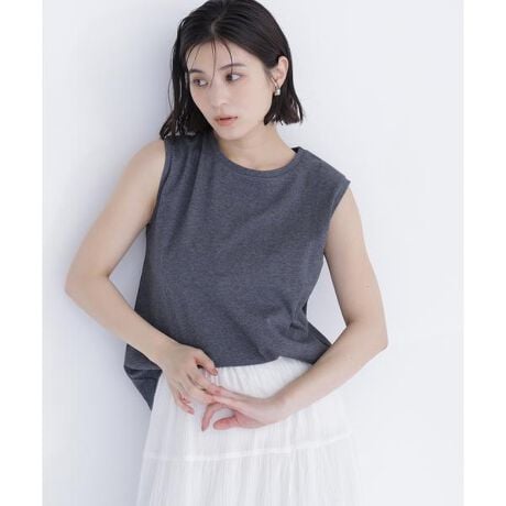 後ろ襟ぐりのメタルパーツが上品なアクセントのノースリーブカットソー。前はシンプルなデザインで、洗練された印象に見せてくれます。すっきりとしたシルエットでパンツにもスカートにも合わせやすく、一枚でさらりと着るのはもちろん、ジャケットやカーディガンのインナーとしても活躍。オンオフ問わず着回せます。<素材>キレイめな印象のプレーティング天竺を使用しています。<詳細>仕様・開閉なし裏地・なし透け感・ややあり / 光沢・なし / 伸縮性・あり生地の厚さ・普通※モデルの着用画像の場合、光の当たり具合により、実際の色味と異なって見えることがございます。色味は、商品単体の画像をご参照ください。