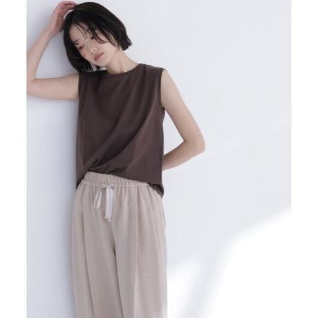 後ろ襟ぐりのメタルパーツが上品なアクセントのノースリーブカットソー。前はシンプルなデザインで、洗練された印象に見せてくれます。すっきりとしたシルエットでパンツにもスカートにも合わせやすく、一枚でさらりと着るのはもちろん、ジャケットやカーディガンのインナーとしても活躍。オンオフ問わず着回せます。<素材>キレイめな印象のプレーティング天竺を使用しています。<詳細>仕様・開閉なし裏地・なし透け感・ややあり / 光沢・なし / 伸縮性・あり生地の厚さ・普通※モデルの着用画像の場合、光の当たり具合により、実際の色味と異なって見えることがございます。色味は、商品単体の画像をご参照ください。