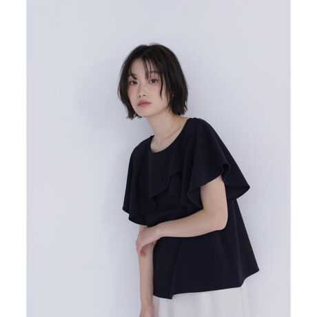 身頃に重なるラッフルフリルが華やかな印象のカットソー。ブラウス見えするキレイめのカットソー素材で、オフィスシーンにもおすすめです。袖は程よいフレアスリーブで二の腕をカバー。ボトムスインでフリルを際立たせると、メリハリのあるコーディネートが完成します。<素材>カットジョーゼット素材を使用しています。<詳細>仕様・開閉なし裏地・なし透け感・なし / 光沢・なし / 伸縮性・あり生地の厚さ・普通※モデルの着用画像の場合、光の当たり具合により、実際の色味と異なって見えることがございます。色味は、商品単体の画像をご参照ください。