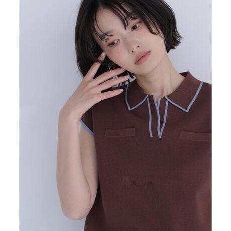 スキッパー襟にバイカラーを効かせたニットプルオーバー。フレンチスリーブとスキッパーの首元で抜け感を演出し、気になる二の腕をカバーします。胸元の箱ポケットがアクセントになり、スカートにもパンツにも合わせやすい一枚です。<素材>ドライタッチのキレイな目面の糸を総針編みで編み立てています。<詳細>仕様・開閉なし裏地・なし透け感・なし / 光沢・なし / 伸縮性・あり生地の厚さ・普通※モデルの着用画像の場合、光の当たり具合により、実際の色味と異なって見えることがございます。色味は、商品単体の画像をご参照ください。