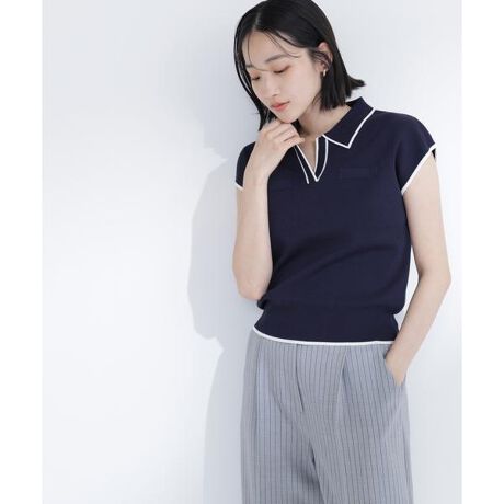 スキッパー襟にバイカラーを効かせたニットプルオーバー。フレンチスリーブとスキッパーの首元で抜け感を演出し、気になる二の腕をカバーします。胸元の箱ポケットがアクセントになり、スカートにもパンツにも合わせやすい一枚です。<素材>ドライタッチのキレイな目面の糸を総針編みで編み立てています。<詳細>仕様・開閉なし裏地・なし透け感・なし / 光沢・なし / 伸縮性・あり生地の厚さ・普通※モデルの着用画像の場合、光の当たり具合により、実際の色味と異なって見えることがございます。色味は、商品単体の画像をご参照ください。