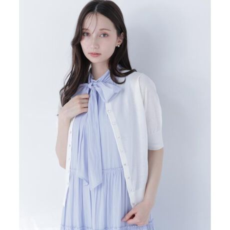 ほんのり透け感のある半袖シアーカーディガン。コンパクト丈でスタイルアップ効果を期待できます。軽やかでミニマルなデザインに、丸みのあるクリアボタンが涼しげなアクセント。前ボタンを留めてトップスとしても着ていただけます。<素材>□UVカットドライタッチなシアーニットを使用しています。<詳細>仕様・前ボタン裏地・なし透け感・ややあり / 光沢・なし / 伸縮性・あり生地の厚さ・普通※モデルの着用画像の場合、光の当たり具合により、実際の色味と異なって見えることがございます。色味は、商品単体の画像をご参照ください。