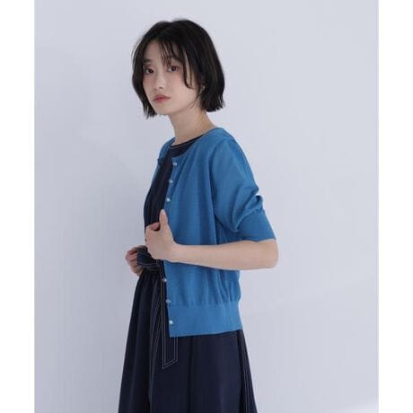 ほんのり透け感のある半袖シアーカーディガン。コンパクト丈でスタイルアップ効果を期待できます。軽やかでミニマルなデザインに、丸みのあるクリアボタンが涼しげなアクセント。前ボタンを留めてトップスとしても着ていただけます。<素材>□UVカットドライタッチなシアーニットを使用しています。<詳細>仕様・前ボタン裏地・なし透け感・ややあり / 光沢・なし / 伸縮性・あり生地の厚さ・普通※モデルの着用画像の場合、光の当たり具合により、実際の色味と異なって見えることがございます。色味は、商品単体の画像をご参照ください。
