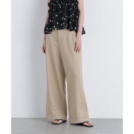 ワイドシルエットながらウエストはすっきりとしたハイウエストパンツ。脇線をやや前に振ったデザインで脚をすっきり見せてくれます。ツイルめのコットン混素材で柔らかく、さらりとしたはき心地です。<素材>綿×再生繊維(セルロース)のツイル素材を使用しています。<詳細>仕様・前ファスナー裏地・なし透け感・なし / 光沢・なし / 伸縮性・なし生地の厚さ・普通※モデルの着用画像の場合、光の当たり具合により、実際の色味と異なって見えることがございます。色味は、商品単体の画像をご参照ください。