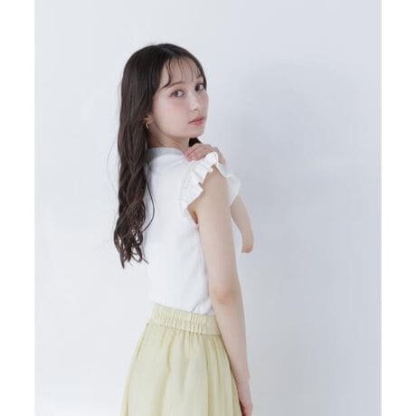 肩とネックのアイレットが涼しげなニット。片畦フリルで立体感と華やかさをプラスし、肩にかかるスリーブ丈で二の腕をすっきり見せてくれます。身頃はすっきりシルエットなので、キレイめスカートとのコーディネートがおすすめです。<素材>さらっとドライタッチな素材を使用。身頃はリブ編みです。<詳細>仕様・開閉なし裏地・なし透け感・ややあり / 光沢・なし / 伸縮性・あり生地の厚さ・普通※モデルの着用画像の場合、光の当たり具合により、実際の色味と異なって見えることがございます。色味は、商品単体の画像をご参照ください。