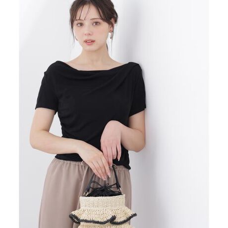 アシンメトリーなドレープが、首元から胸元にかけてキレイに流れるプルオーバー。程よい肌見せが顔まわりを明るく、女性らしい印象に見せてくれます。柔らかく伸縮性のある素材を使用しているため、動きやすく快適な着心地です。裾のこだわりカッティングにより、インせずそのまま着るだけでバランス良く決まるデザイン。忙しい朝もさっと着るだけでこなれたスタイリングが完成します。