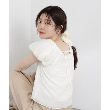 涼しげな楊柳素材を使用したコンパクトブラウス。こだわりのパフスリーブは、着るだけでキレイなシルエットに見せてくれます。コンパクトシルエットに、バックスタイルの共布リボンがさりげないアクセント。オンオフ問わず活躍でき、裾をアウトしてもバランス良く決まるデザインです。