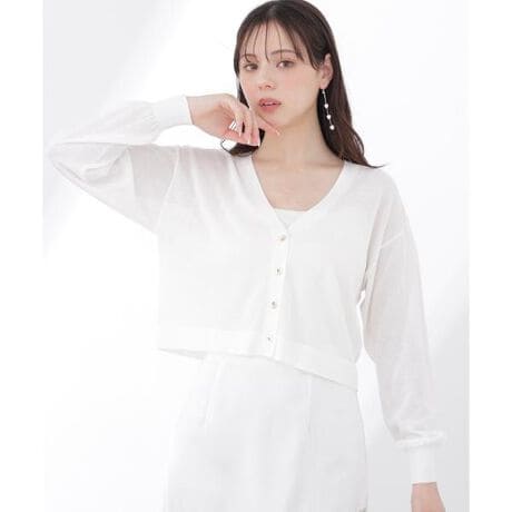 程よい透け感のあるシアーカーディガン。フロントのメタル釦が上品でレディな印象をプラスします。ゆとりのあるシルエットで、インナーを選ばず幅広いスタイルにマッチ。袖口はリブ仕様で、袖丈の調整がしやすく着心地が良いです。