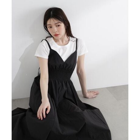 様々なコーディネートが楽しめるキャミジャンパースカート。ウエストゴム仕様のフィット&フレアシルエットで、女性らしいラインを演出。後ろはリボン紐で長さ調整ができ、デザイン性と着やすさを両立。タフタ素材を使用しており、Tシャツやニット、ベアトップなど、インナー次第でロングシーズン着用いただけます。