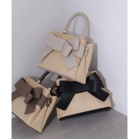 人気アイテムが春夏素材になって登場!フロントにあしらったリボンが愛らしいバッグ。中央で2部屋に仕切られたデザインで、中身が見やすくなっています。口元はマグネットボタン付き。付属ショルダーは取り外しできる2way仕様です。