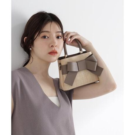 人気アイテムが春夏素材になって登場!フロントにあしらったリボンが愛らしいバッグ。中央で2部屋に仕切られたデザインで、中身が見やすくなっています。口元はマグネットボタン付き。付属ショルダーは取り外しできる2way仕様です。