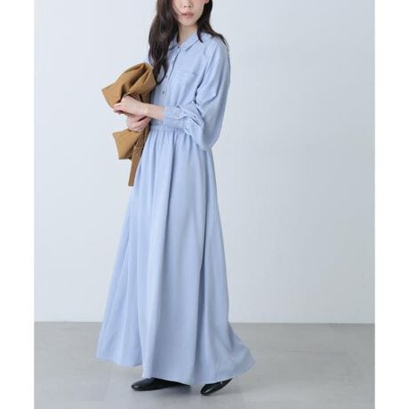 ウエストゴム仕様で自然なブラウジングを叶えるシャツワンピース。裾に向かって広がるフレアシルエットで、レディライクな印象に仕上げています。両脇ポケット付き。一枚着るだけでサマになるデザインです。無地2色(オフホワイト・サックス)と先染めストライプ1色を揃えています。無地は程よい厚みのツイル素材を使用し、さらっとした肌触りが特徴。スカート部分は裏地つきです。※モデルの着用画像の場合、光の当たり具合により、実際の色味と異なって見えることがございます。色味は、商品単体の画像をご参照ください。
