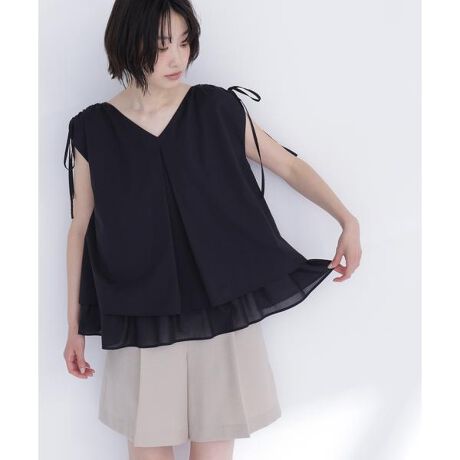 ショルダーリボンティアードチュニックブラウス