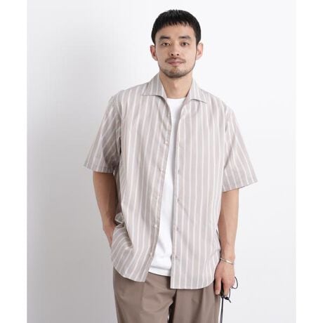ドレスライクな品の良いワイドスプレッドで、オンオフ問わず使える半袖シャツ。ストライプの表情とシルエットで大人っぽく見せられるアイテムです。