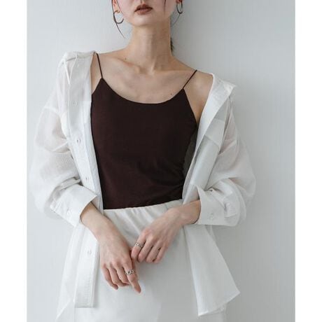 お洒落の完成度を内側から支える、頼れるバックオープンキャミソール。繊細な肩紐と大胆な背中のカッティングが、後ろ姿に自分らしい抜け感を添えてくれます。汗じみ防止加工により、淡い色のシャツや透け感のあるアイテムを纏う日も、一日中スマートな佇まいをキープ. 柔らかな肌触りのカットソー生地は身体に心地よくフィットし、見せるインナーとしての華やかさと、日常に寄り添う機能美を両立した、クローゼットに欠かせない実力派アイテムです。