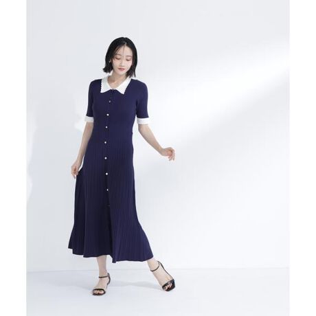 上品なレースディテールが映えるニットワンピース。ニットで編み立てたレース襟とカフスが、柔らかく繊細な印象を演出します。ウエストマークが自然なメリハリをつけ、スタイルアップ効果も期待。一枚でコーディネートが完成する大人フェミニンなアイテムです。<素材>柔らかく肌なじみの良いニット素材を使用。程よい伸縮性で快適な着心地です。<詳細>仕様・前ボタン裏地・なし透け感・なし / 光沢・なし / 伸縮性・あり生地の厚さ・普通※モデルの着用画像の場合、光の当たり具合により、実際の色味と異なって見えることがございます。色味は、商品単体の画像をご参照ください。