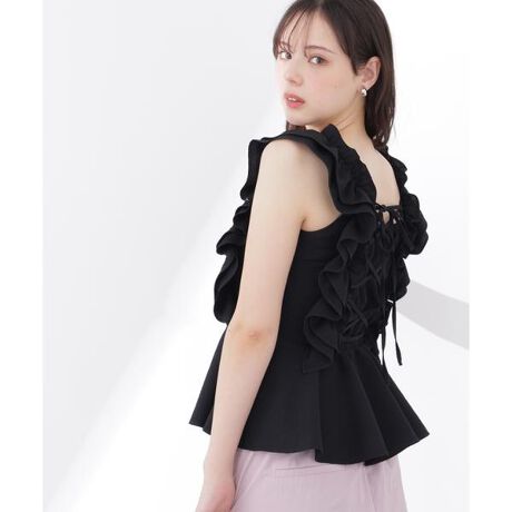 前後のフリルがトレンドライクなブラウス。表面感のある素材で、フェミニンなディテールを程よくカジュアルに仕上げた一枚。後ろはレースアップも映えるデザインです。今年らしいペプラムシルエットでスタイルアップも期待。デニムパンツと合わせたカジュアルダウンコーデもおすすめです。