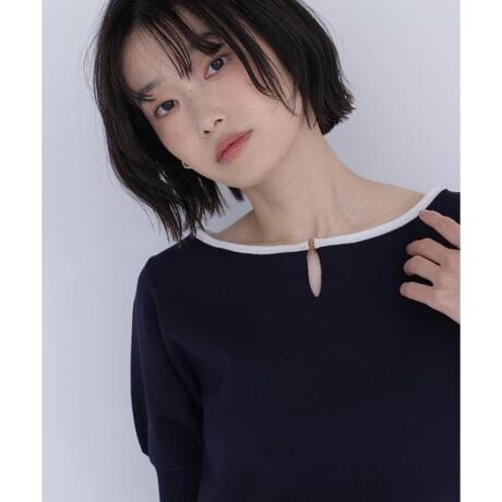 人気アイテムより新色が入荷!襟ぐりのTバーメタルホックをアクセントに効かせた、キレイめニットプルオーバー。襟と袖口に華奢なバイカラーデザインを入れ、袖はほんのり膨らみのあるフォルムで女性らしさを演出します。スカートもパンツも合わせやすく、デイリーからオフィスシーンまで着ていただけます。<素材>サラッとした肌触りで目面のキレイなニットを使用。フロントにデザインポイントでホックが付いていますが、ホックを開けなくても被りで着ていただけます。<詳細>仕様・前ホック裏地・なし透け感・なし / 光沢・なし / 伸縮性・あり生地の厚さ・普通※モデルの着用画像の場合、光の当たり具合により、実際の色味と異なって見えることがございます。色味は、商品単体の画像をご参照ください。