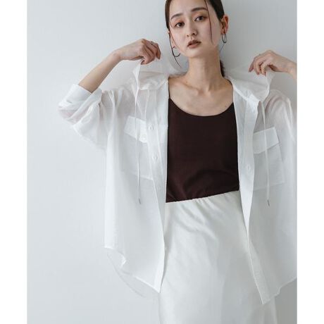 シャツのきちんと感とパーカーのラフさを掛け合わせた、今季らしい一着。程よい透け感が、カジュアルな中にも女性らしいヘルシーな色気を演出します。キャミソールの上からさらりと羽織るだけで、等身大のリアルクローズをぐっと都会的なスタイルへと導きます。