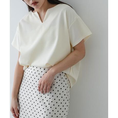 ・ネックラインをキーネックにアップデートし、デコルテを美しく演出