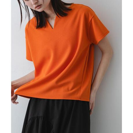 カジュアルなボーダーを、大人っぽく洗練された表情にアップデートしました。フロントのキーネックが顔周りをすっきり見せ、等身大のリアルな装いに旬な空気を運びます。夏の日差しに映える軽やかな一着は、シンプルなボトムスに合わせるだけで、こだわりを感じるスタイルが完成します。