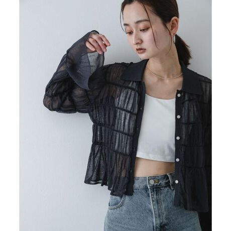・シアー感のある繊細なニット素材が、涼しげな女性らしさを演出