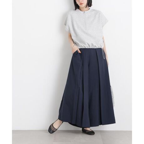 ワイドなシルエットとボックスプリーツが印象的な、存在感のあるワイドパンツ。たっぷりとした分量感で、まるでスカートのような軽やかな履き心地と、美しいシルエットを叶えてくれる一枚。シャリッとしたドライタッチで通気性も良く、汗ばむ季節でも快適に過ごせるアイテムです。