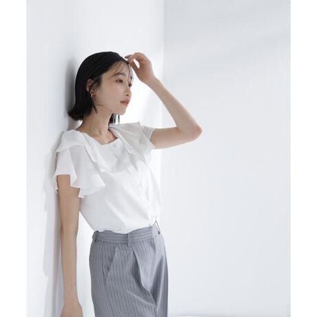 デコルテをキレイに見せるスクエアネックが印象的なフリルブラウス。ボリューム感のあるフリルが顔まわりを華やかに見せてくれます。パンツにもスカートにも合わせやすく、カジュアルからフェミニンまで幅広いスタイリングが可能。シンプルなボトムと合わせるだけで着映えし、デイリーから特別なシーンまで活躍します。<素材>やわらかな風合いの素材を使用しています。<詳細>仕様・前ボタン裏地・なし透け感・ややあり / 光沢・なし / 伸縮性・ややあり生地の厚さ・普通※モデルの着用画像の場合、光の当たり具合により、実際の色味と異なって見えることがございます。色味は、商品単体の画像をご参照ください。