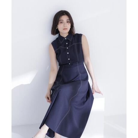 襟付きバイカラーステッチワンピース