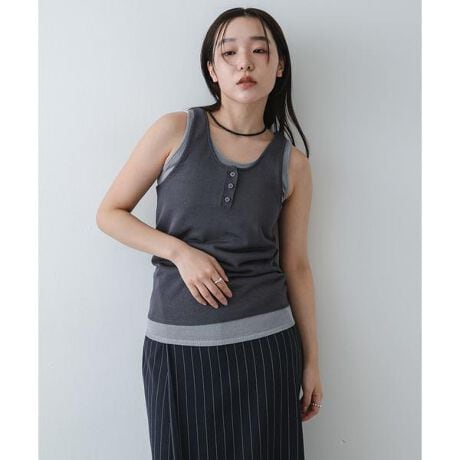 【旬をレイヤード。配色が映えるアンサンブルタンクトップ】