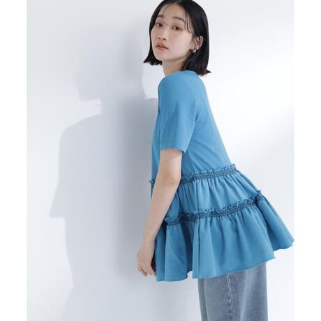 Tシャツボディに布帛のティアードをドッキングした異素材コンビトップス。裾に向かって広がるティアード切り替えで、軽やかなシルエットを演出します。配色ステッチがさりげないアクセントになり、身頃はカットソー素材で着心地が良いです。<素材>表面が整った天竺カットソーを使用しています。<詳細>仕様・開閉なし裏地・なし透け感・なし / 光沢・なし / 伸縮性・あり生地の厚さ・普通※モデルの着用画像の場合、光の当たり具合により、実際の色味と異なって見えることがございます。色味は、商品単体の画像をご参照ください。