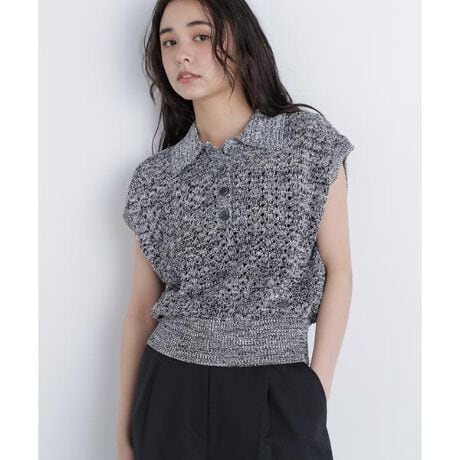メランジ糸を使用した表情感のあるポロニット。すっきりと着られるノースリーブデザインで、軽やかな印象に見せてくれます。バイカラーのボタンがさりげないアクセントになり、シンプルながらも映える一枚。デイリーからキレイめスタイルまで幅広く活躍します。<素材>メランジ糸ならではの奥行きのあるニット素材を使用。さらっとした肌触りで、快適な着心地です。<詳細>仕様・前ボタン裏地・なし透け感・ややあり / 光沢・なし / 伸縮性・あり生地の厚さ・普通※モデルの着用画像の場合、光の当たり具合により、実際の色味と異なって見えることがございます。色味は、商品単体の画像をご参照ください。