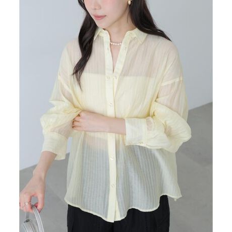 毎年ご好評のシアーシャツが、細いダブルストライプにリニューアル!マニッシュになりがちなストライプ柄も、シアー素材で女性らしく着られます。爽やかなカラーと程よいオーバーシルエットで抜け感を演出。デニム×タンクトップの上からラフに羽織るだけで、こなれ感のあるスタイルが完成。薄手なのでビスチェのインナーとしてもおすすめです。※モデルの着用画像の場合、光の当たり具合により、実際の色味と異なって見えることがございます。
