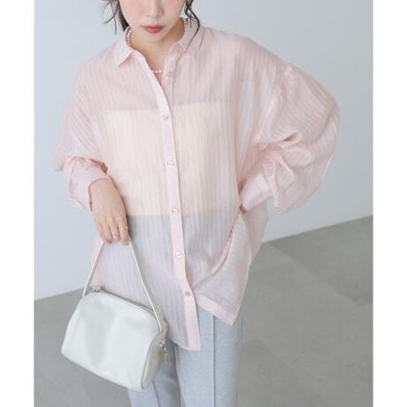 毎年ご好評のシアーシャツが、細いダブルストライプにリニューアル!マニッシュになりがちなストライプ柄も、シアー素材で女性らしく着られます。爽やかなカラーと程よいオーバーシルエットで抜け感を演出。デニム×タンクトップの上からラフに羽織るだけで、こなれ感のあるスタイルが完成。薄手なのでビスチェのインナーとしてもおすすめです。※モデルの着用画像の場合、光の当たり具合により、実際の色味と異なって見えることがございます。