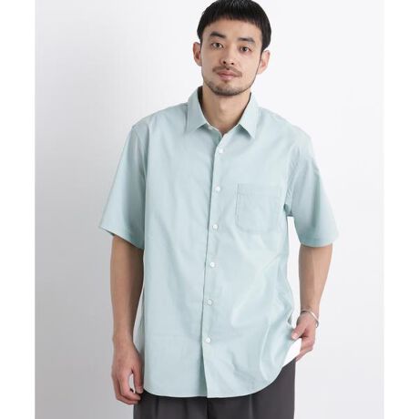 クセのないレギュラーカラーで、オンオフ問わず使える半袖シャツ。無地ながら、リネン見えの表情とシルエットで大人っぽく見せられるアイテムです。