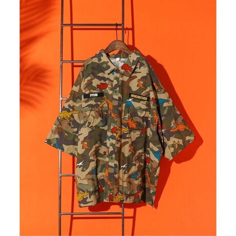 カモフラ柄に、恐竜がちょこっと差し色で散りばめられたデザインは、