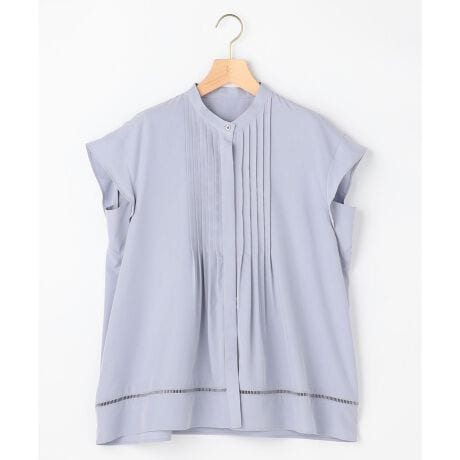 ■デザイン・胸元の細かな折り目(ピンタック)と裾のレース使いで、軽やかで夏らしい上品なブラウスです。・肩先が隠れるフレンチスリーブは、袖先マチを付け、インナーが見えにくい安心の仕様になっています。・身頃は大きすぎない程よいシルエットで、夏の1枚着として重宝します。・同素材のボトムと合わせてセットアップとしても、シーンに合わせて活躍するアイテムです。
