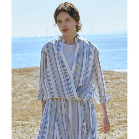 爽やかなストライプで清涼感漂う、羽織りにもカシュクールにもなる2wayシャツ