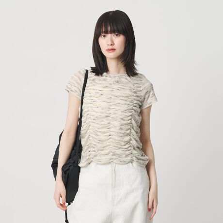 表情のある素材が主役。着映えるシャーリングトップス