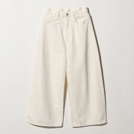 腰や裾にダーツを入れた、立体的なシルエットのワイドデニムパンツ。