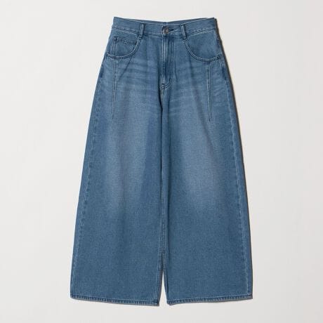 腰や裾にダーツを入れた、立体的なシルエットのワイドデニムパンツ。