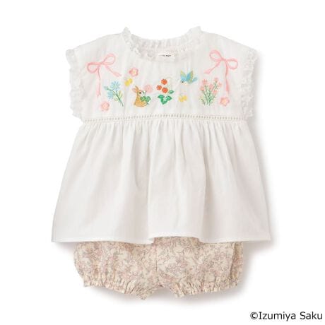 胸元にあしらったキュートなモチーフ刺しゅうが目を引くセットアップです。