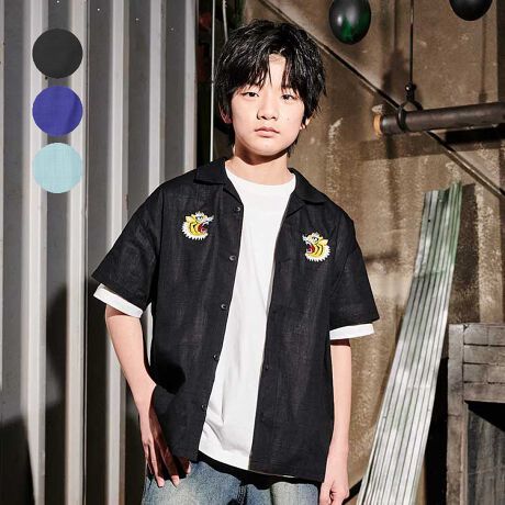 DaddyOhDaddyのアメカジテイストの120〜170cmのスクール、ジュニアアイテムライン。直営店では直営オンラインショップ「こどもの森e-shop」各店のみでの販売になります。【直営実店舗での販売はありません。】前にはトラの刺繍、後ろにもトラの刺繍がかっこいい!綿100%で夏のお出かけにオススメなスカシャツ。【アイテム】トップス カジュアル お洒落 オシャレ かっこいい かわいい 可愛い 普段着 デイリーウェア お出かけ着 お外着 お外遊び着 子ども服 こども服 男児 男の子 ボーイズ キッズ トドラーサイズ 幼稚園 保育園 小学校 通園 通学 小学生 2026年春夏物新作 丸高衣料 半袖 ジュニアサイズ スクールサイズ 男女兼用 ユニセックス 女児 女の子 ガールズ 中学校 中学生 高校生 修学旅行 林間学校 校外学習 遠足 ダディオダディ ブラック 黒色 ブルー 青色 サックス 水色 スカジャン コットン100% 綿100%