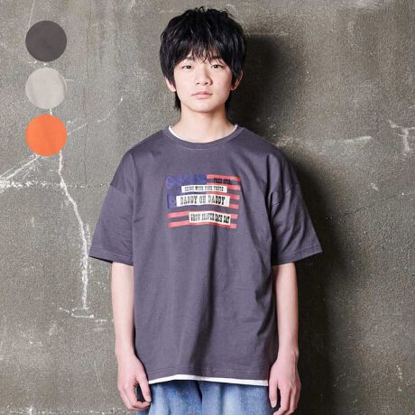 DaddyOhDaddyのアメカジテイストの120〜170cmのスクール、ジュニアアイテムライン。直営店では直営オンラインショップ「こどもの森e-shop」各店のみでの販売になります。【直営実店舗での販売はありません。】前には星条旗とロゴのプリント、後ろには手描き風のロゴのプリント入り。綿100%でデイリー使いにオススメな半袖Tシャツ。(グレーとオレンジはピグメント加工のため、色落ちや色移りしやすいです。)【アイテム】トップス カジュアル お洒落 オシャレ かっこいい かわいい 可愛い 普段着 デイリーウェア お出かけ着 お外着 お外遊び着 子ども服 こども服 男児 男の子 ボーイズ キッズ トドラーサイズ 幼稚園 保育園 小学校 通園 通学 小学生 2026年春夏物新作 丸高衣料 半袖 ジュニアサイズ スクールサイズ 男女兼用 ユニセックス 女児 女の子 ガールズ 中学校 中学生 高校生 修学旅行 林間学校 校外学習 遠足 ダディオダディ ブラック 黒色 グレー 灰色 オレンジ コットン100% 綿100%