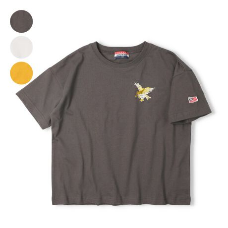 DaddyOhDaddyのアメカジテイストの120〜170cmのスクール、ジュニアアイテムライン。直営店では直営オンラインショップ「こどもの森e-shop」各店のみでの販売になります。【直営実店舗での販売はありません。】胸にはワシ、背中にも大きな刺繍風の発砲プリント入り。スカジャン風デザインがかっこいいスカTシャツ。【アイテム】トップス カジュアル お洒落 オシャレ かっこいい かわいい 可愛い 普段着 デイリーウェア お出かけ着 お外着 お外遊び着 子ども服 こども服 男児 男の子 ボーイズ キッズ トドラーサイズ 幼稚園 保育園 小学校 通園 通学 小学生 2026年春夏物新作 丸高衣料 半袖 ジュニアサイズ スクールサイズ 男女兼用 ユニセックス 女児 女の子 ガールズ 中学校 中学生 高校生 修学旅行 林間学校 校外学習 遠足 ダディオダディ コットン100% 綿100% 富士山 鷲 わし 鳥 ブラック 黒色 オフホワイト 白色 イエロー 黄色