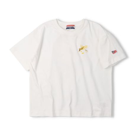 DaddyOhDaddyのアメカジテイストの120〜170cmのスクール、ジュニアアイテムライン。直営店では直営オンラインショップ「こどもの森e-shop」各店のみでの販売になります。【直営実店舗での販売はありません。】胸にはワシ、背中にも大きな刺繍風の発砲プリント入り。スカジャン風デザインがかっこいいスカTシャツ。【アイテム】トップス カジュアル お洒落 オシャレ かっこいい かわいい 可愛い 普段着 デイリーウェア お出かけ着 お外着 お外遊び着 子ども服 こども服 男児 男の子 ボーイズ キッズ トドラーサイズ 幼稚園 保育園 小学校 通園 通学 小学生 2026年春夏物新作 丸高衣料 半袖 ジュニアサイズ スクールサイズ 男女兼用 ユニセックス 女児 女の子 ガールズ 中学校 中学生 高校生 修学旅行 林間学校 校外学習 遠足 ダディオダディ コットン100% 綿100% 富士山 鷲 わし 鳥 ブラック 黒色 オフホワイト 白色 イエロー 黄色