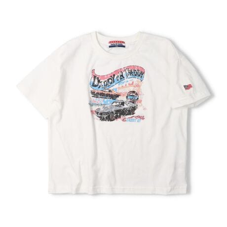 DaddyOhDaddyのアメカジテイストの120〜170cmのスクール、ジュニアアイテムライン。直営店では直営オンラインショップ「こどもの森e-shop」各店のみでの販売になります。【直営実店舗での販売はありません。】古着風のかすれたプリントがかっこいい!アメカジテイストのデザインにゆったりシルエットがお洒落な半袖Tシャツ。(パープルのみピグメント加工のため、色落ちや色移りしやすいです。)【アイテム】トップス カジュアル お洒落 オシャレ かっこいい かわいい 可愛い 普段着 デイリーウェア お出かけ着 お外着 お外遊び着 子ども服 こども服 男児 男の子 ボーイズ キッズ トドラーサイズ 幼稚園 保育園 小学校 通園 通学 小学生 2026年春夏物新作 丸高衣料 半袖 ジュニアサイズ スクールサイズ 男女兼用 ユニセックス 女児 女の子 ガールズ 中学校 中学生 高校生 修学旅行 林間学校 校外学習 遠足 ダディオダディ ブラック 黒色 オフホワイト 白色 パープル 紫色 コットン100% 綿100%